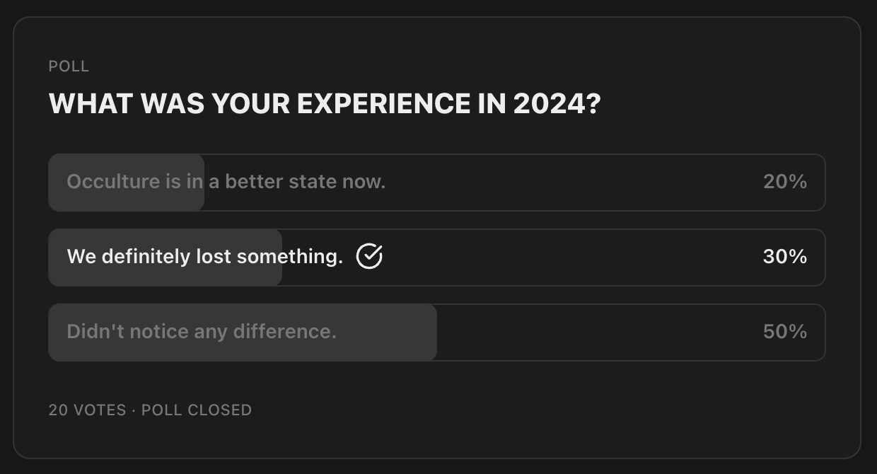 As we stand on the brink of 2025, the occult scene feels quieter, more pensive, and more fragmented. The dynamism of recent years may never return in the same form. But authenticity never goes out of style.